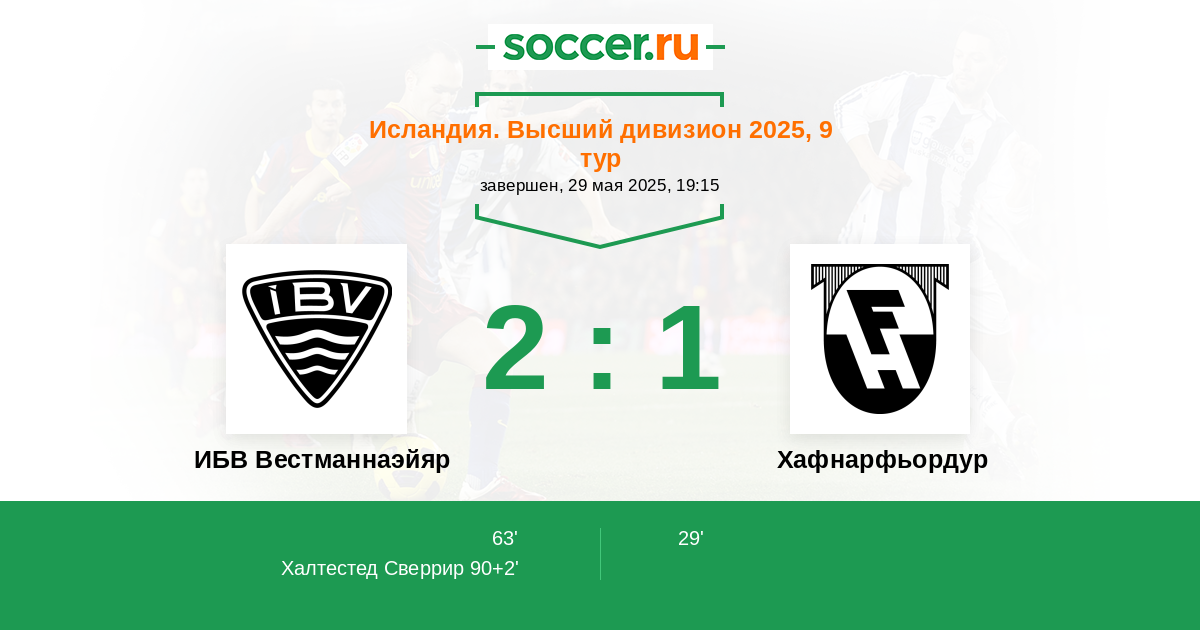 Протокол матча ИБВ Вестманнаэйяр против Хафнарфьордур