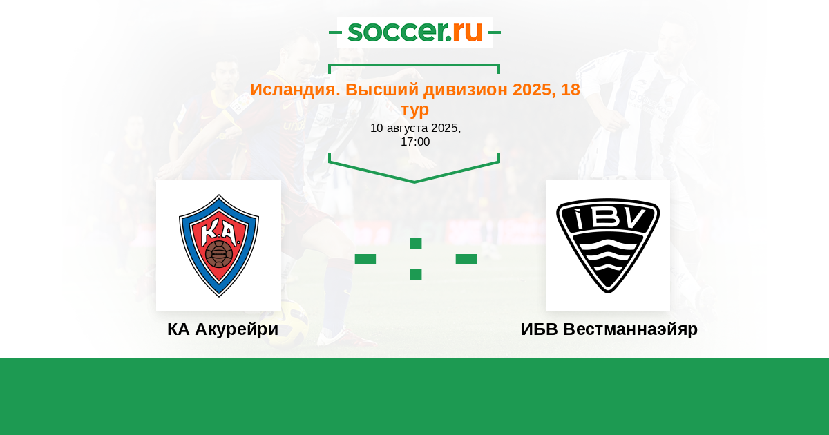 Протокол матча КА Акурейри против ИБВ Вестманнаэйяр