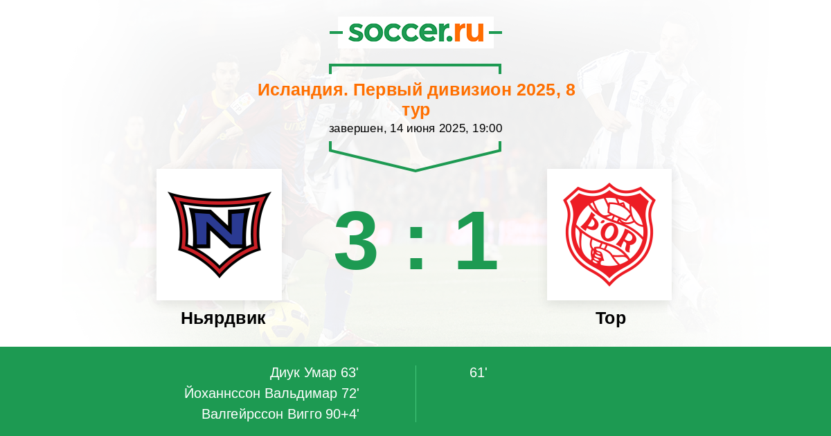 72' (2:1) Йоханнссон Вальдимар (10) (S. Thordarson)