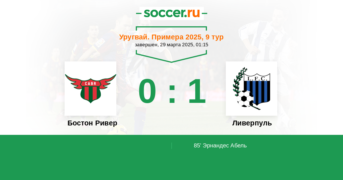 Протокол матча Бостон Ривер против Ливерпуль