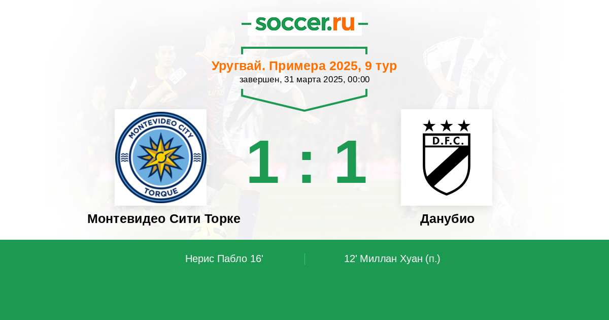 Протокол матча Монтевидео Сити Торке против Данубио