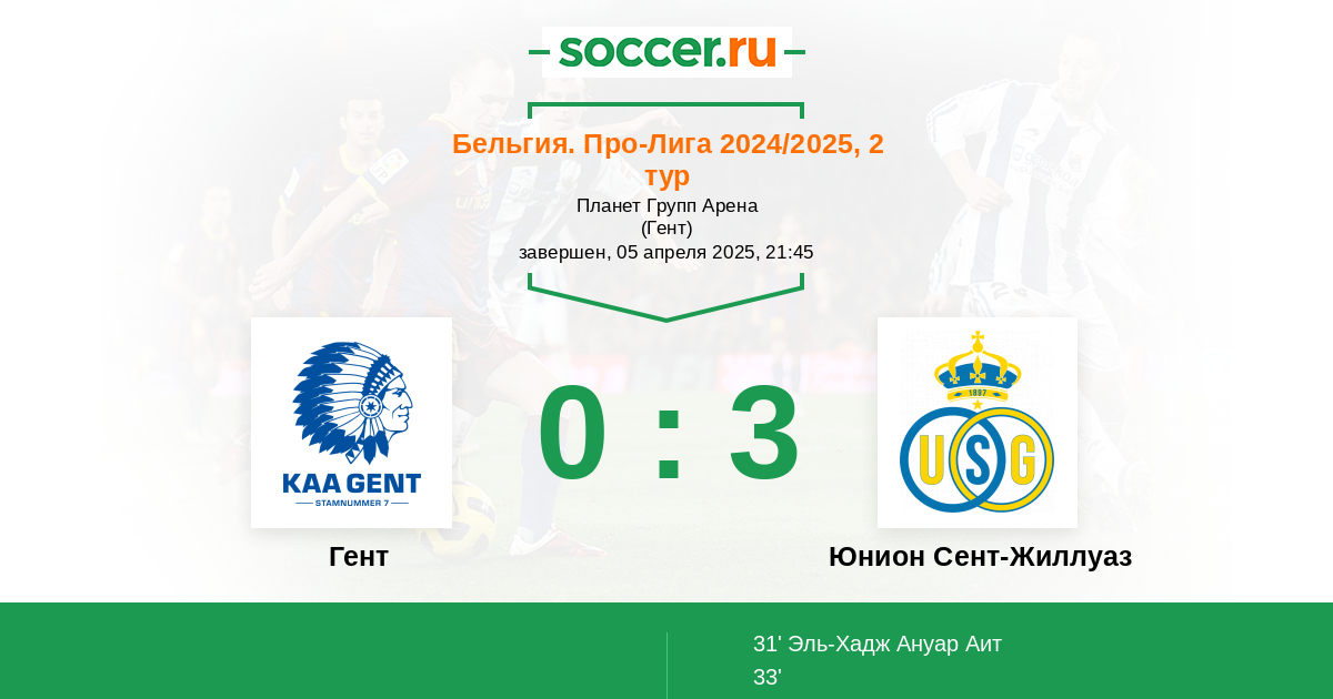 Протокол матча Гент против Юнион Сент-Жиллуаз
