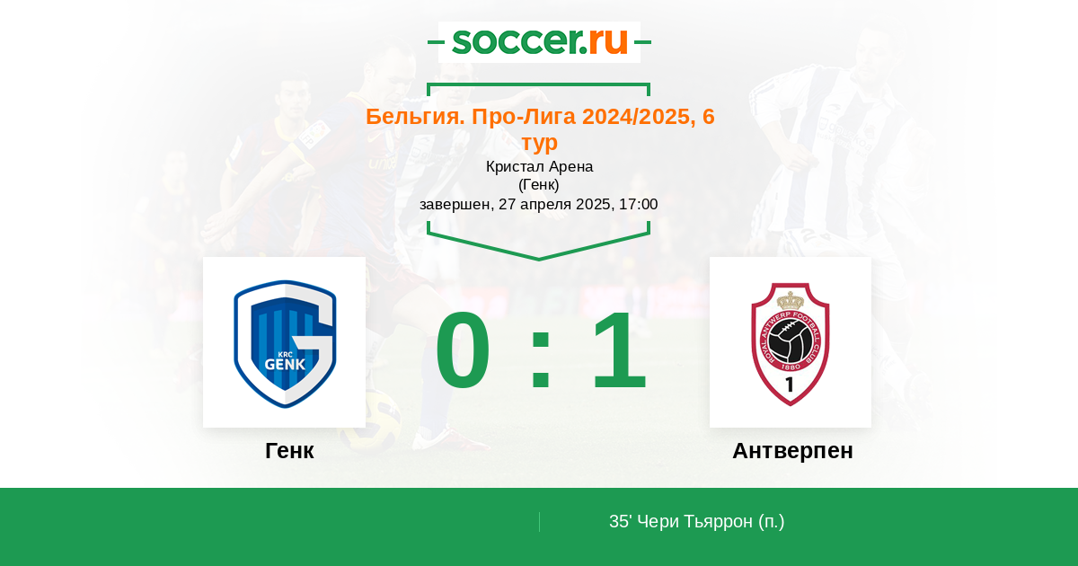 Протокол матча Генк против Антверпен