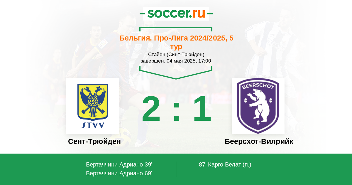 Протокол матча Сент-Трюйден против Беерсхот-Вилрийк