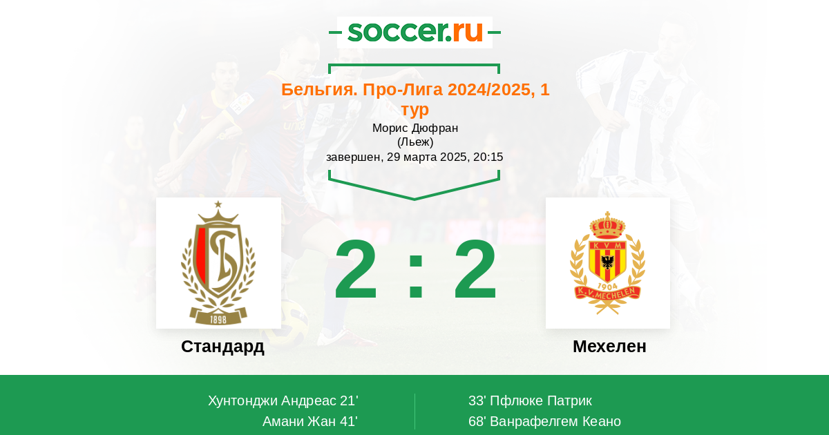 Протокол матча Стандард против Мехелен