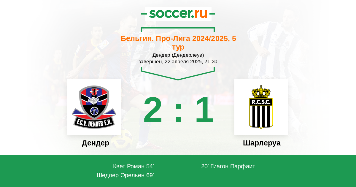 благодаря уверенной победе над Мехеленом в прошлом матче Шарлеруа стал единоличным лидером группы Лиги конференций в чемпионате Бельгии. Сумеют ли зебры развить успех в грядущем противостоянии с Дендером, мы узнаем