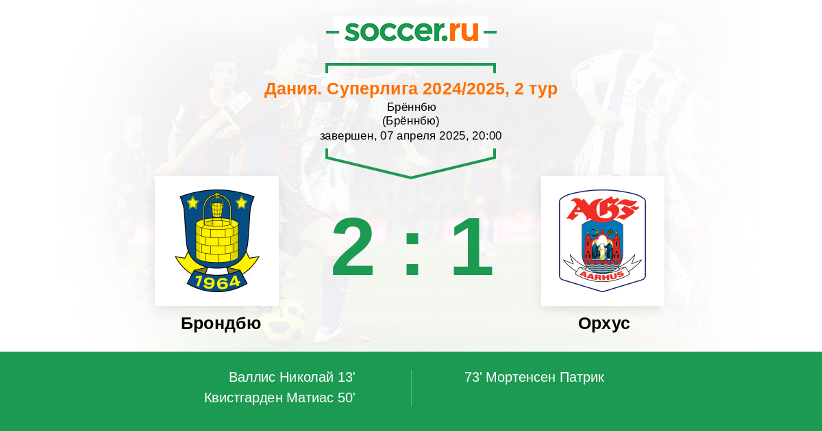 Протокол матча Брондбю против Орхус