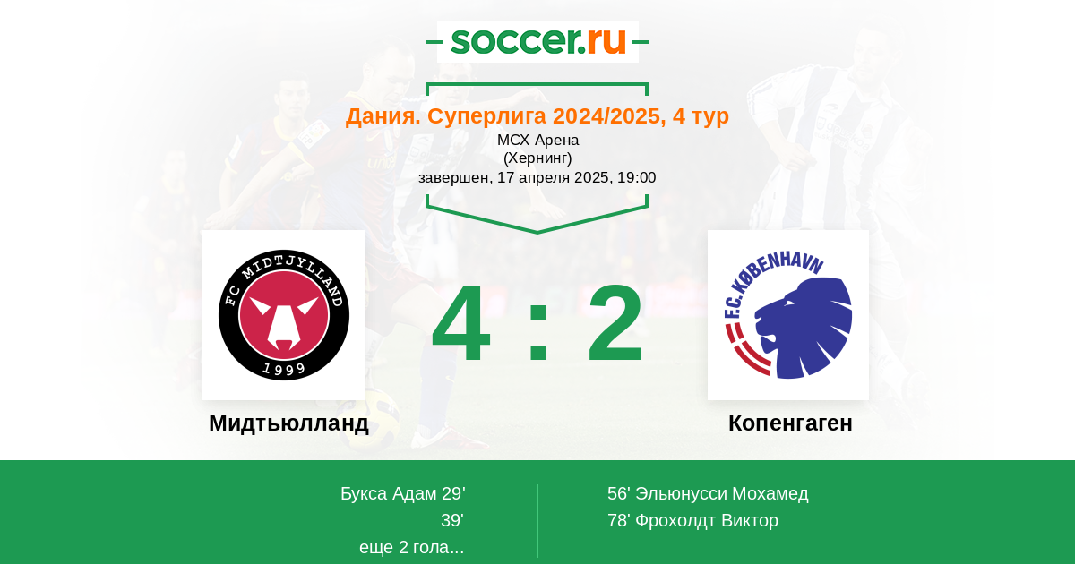 Протокол матча Мидтьюлланд против Копенгаген
