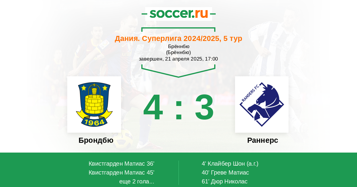 Протокол матча Брондбю против Раннерс