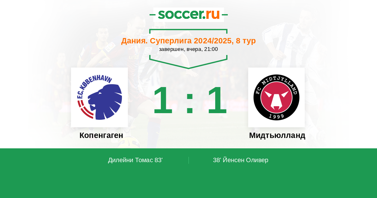 Протокол матча Копенгаген против Мидтьюлланд