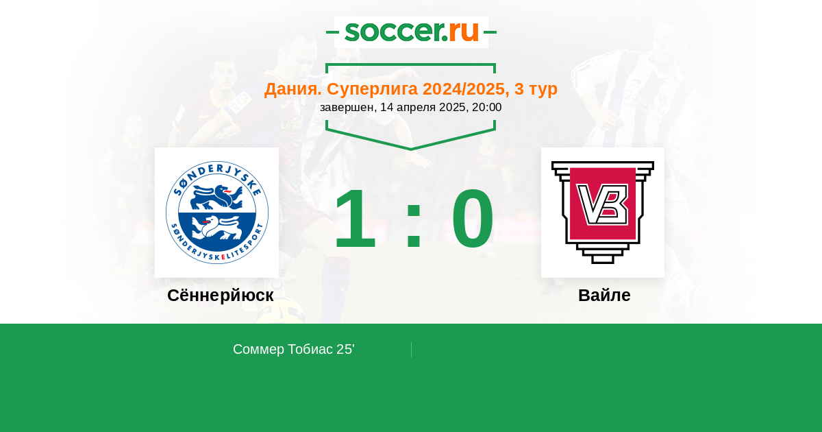 25' (1:0) Соммер Тобиас (26) (Аггер Мадс (25))