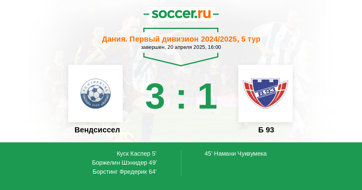 5' (1:0) Куск Каспер (17) (Манк Магнус (47))
