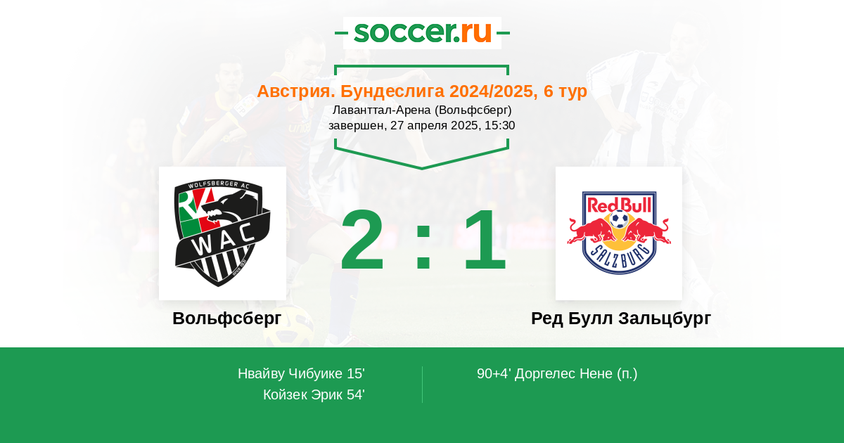 Протокол матча Вольфсберг против Ред Булл Зальцбург
