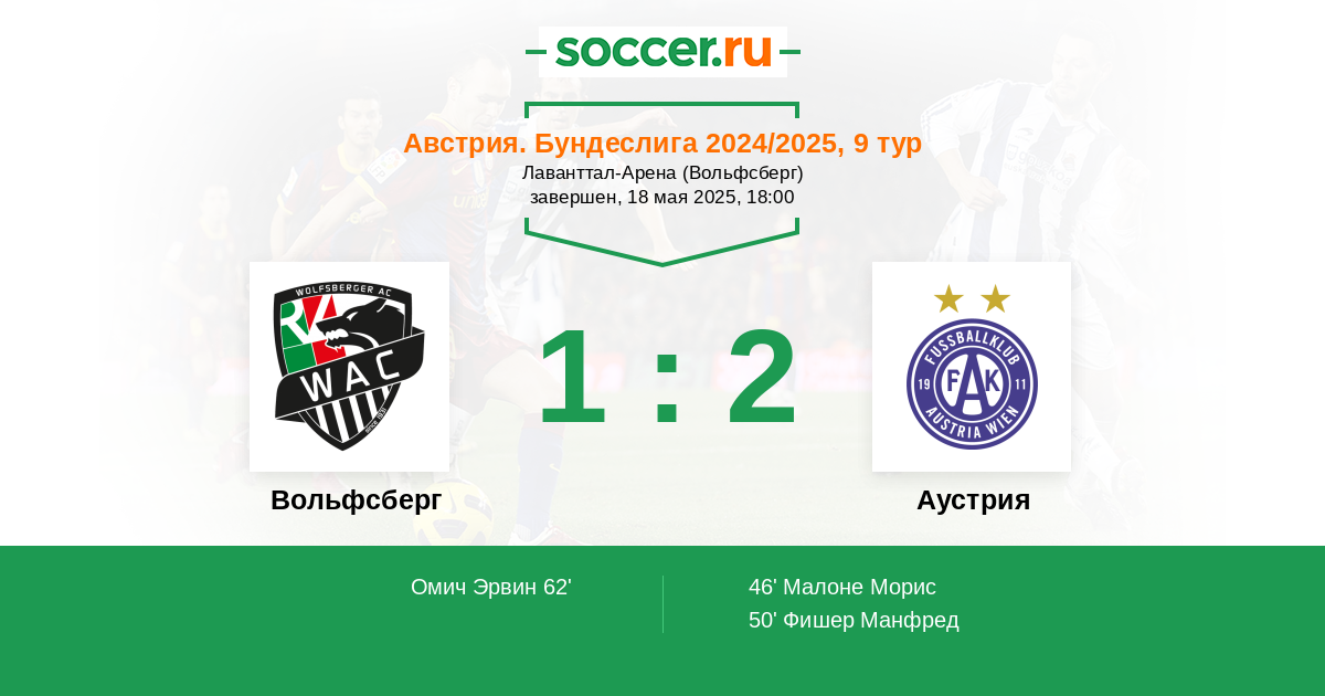 Протокол матча Вольфсберг против Аустрия