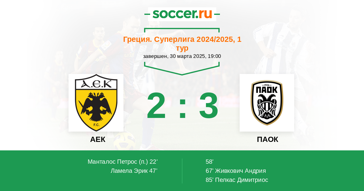 Протокол матча АЕК против ПАОК
