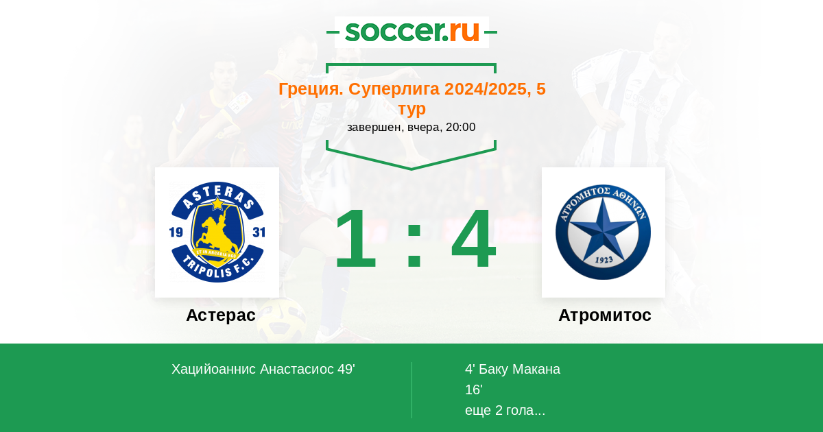 Протокол матча Астерас против Атромитос