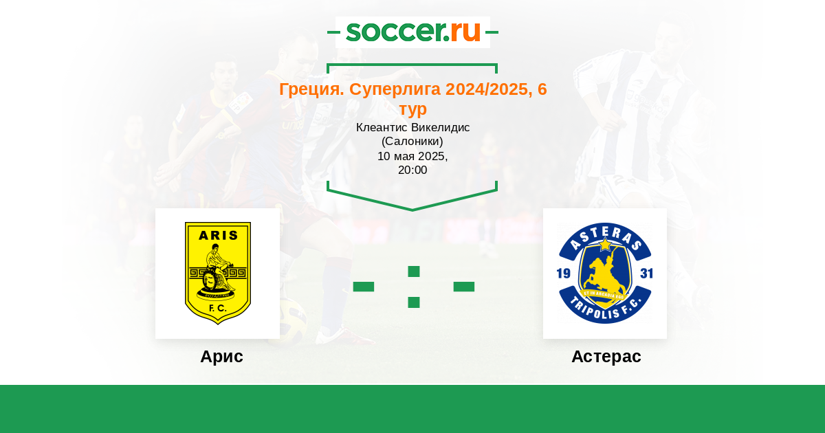 Протокол матча Арис против Астерас