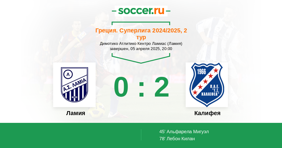 Протокол матча Ламия против Калифея