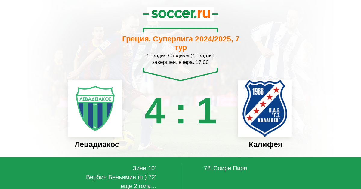 Протокол матча Левадиакос против Калифея