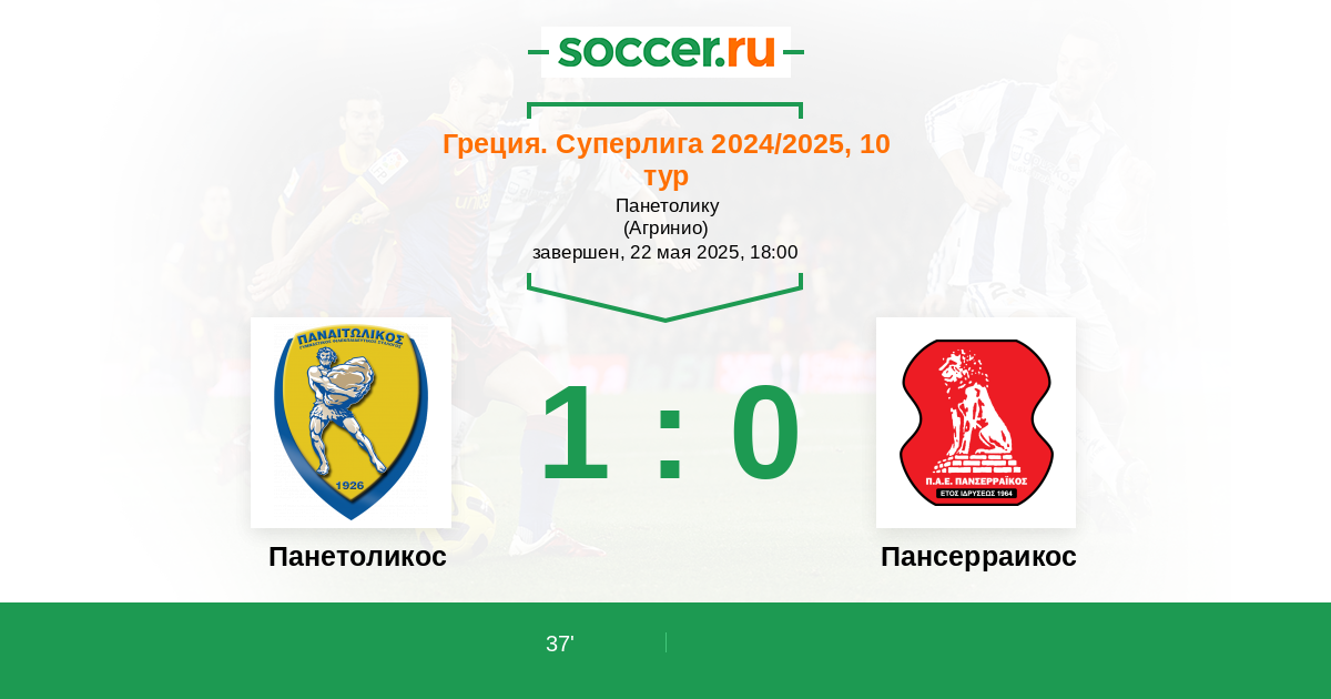 Протокол матча Панетоликос против Пансерраикос