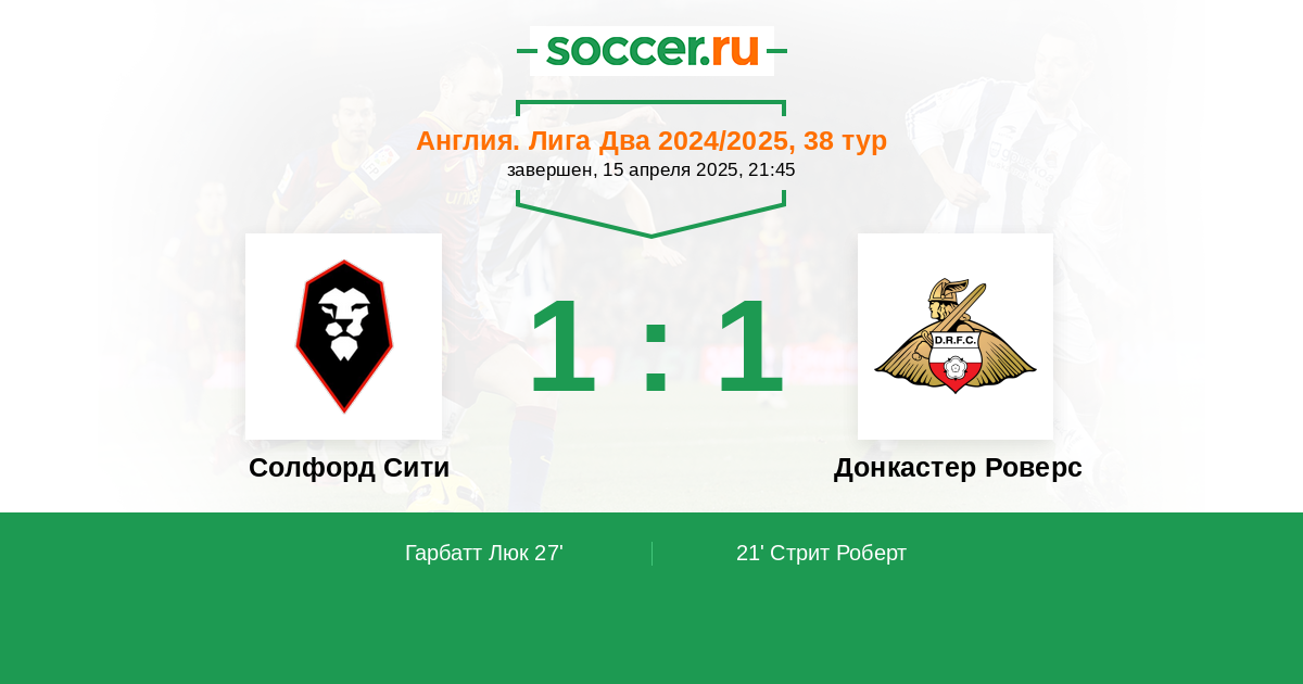 Протокол матча Солфорд Сити против Донкастер Роверс