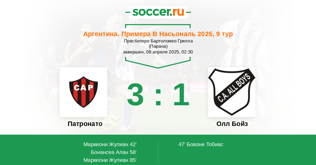 Протокол матча Патронато против Олл Бойз