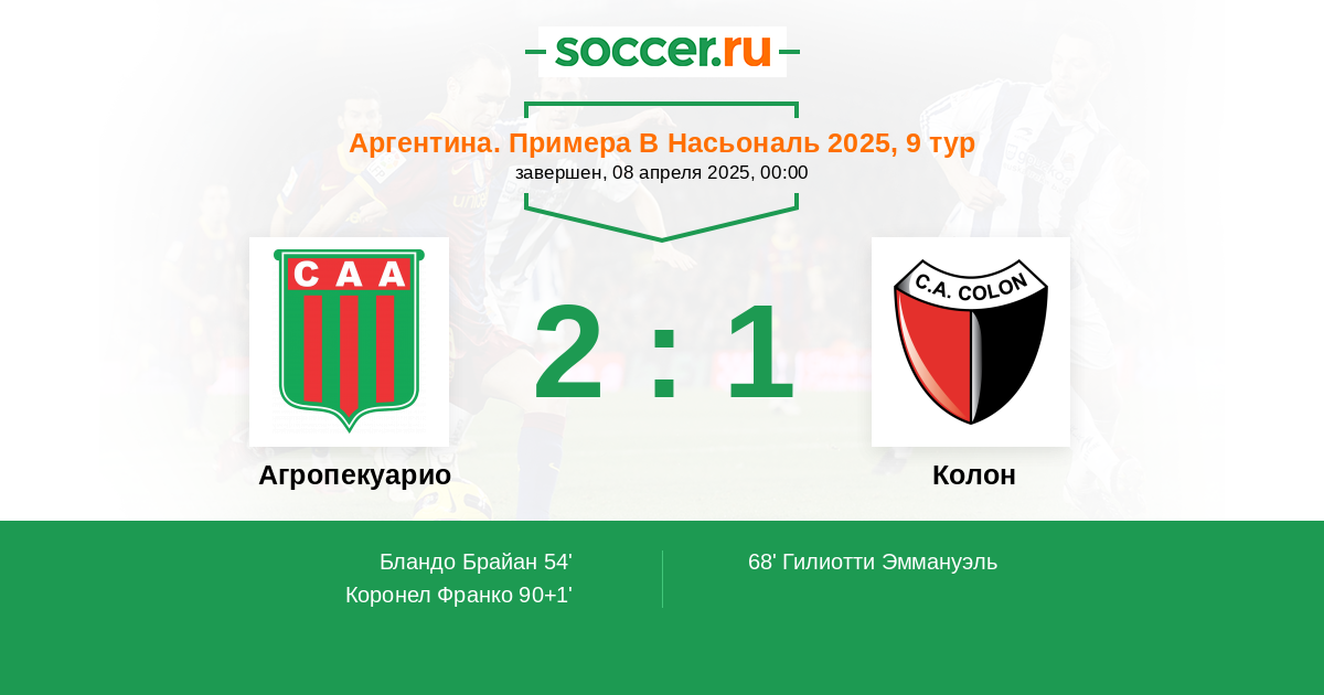 Протокол матча Агропекуарио против Колон