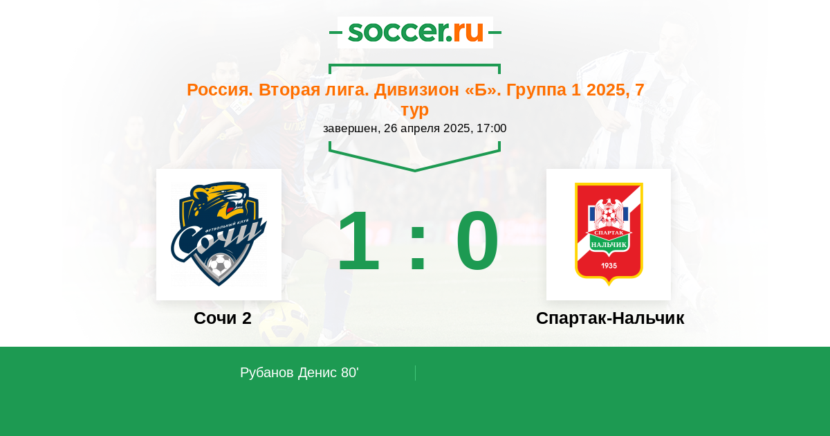 Протокол матча Сочи 2 против Спартак-Нальчик