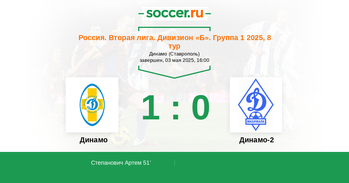Протокол матча Динамо Ставрополь против Динамо-2