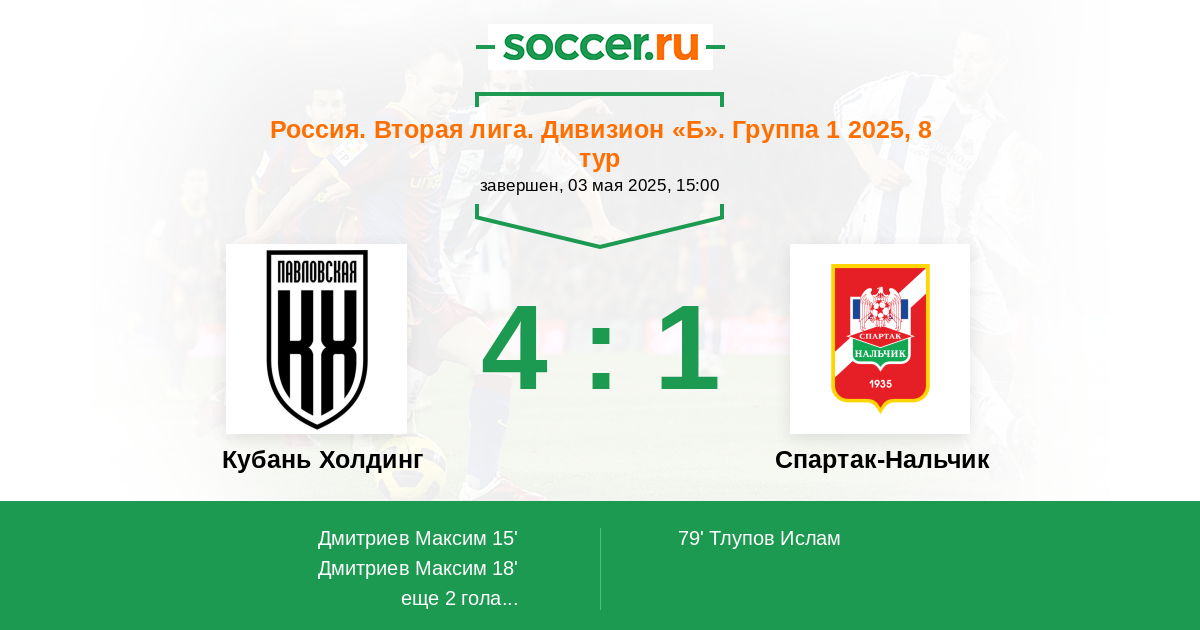 Протокол матча Кубань Холдинг против Спартак-Нальчик