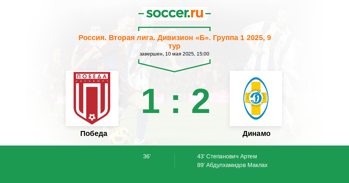 Протокол матча Победа против Динамо Ставрополь