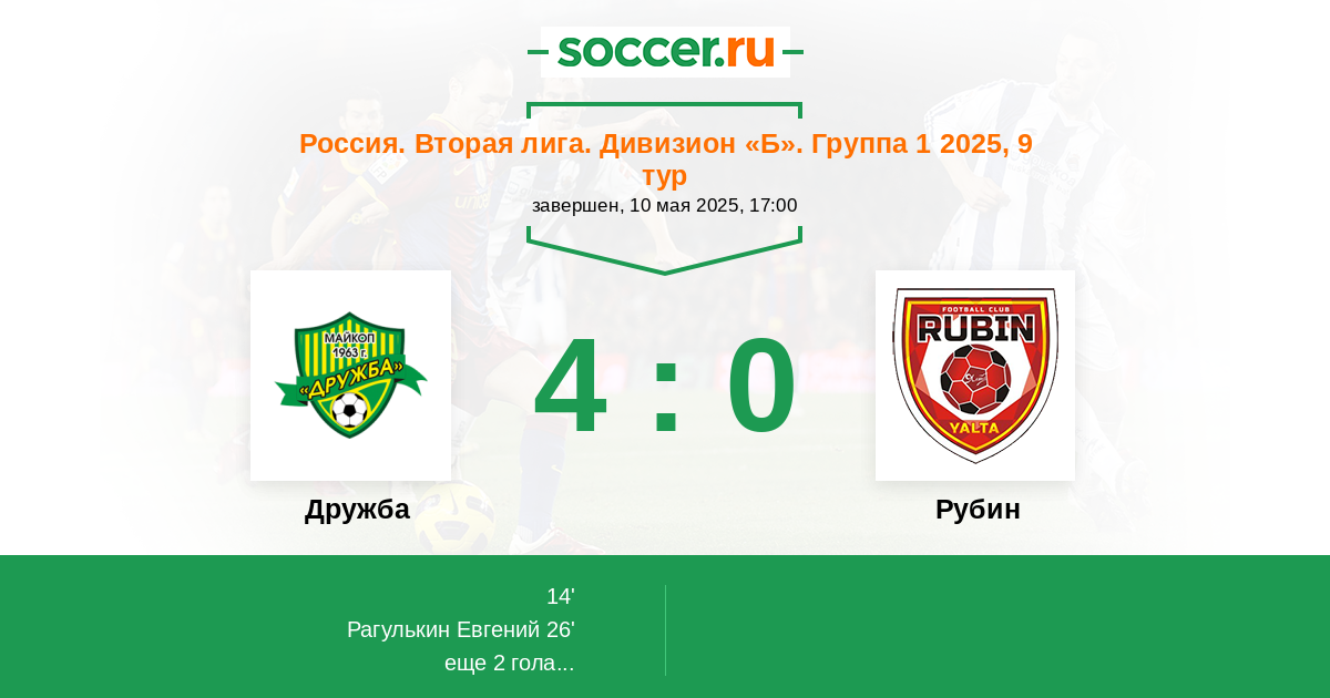 Протокол матча Дружба против Рубин