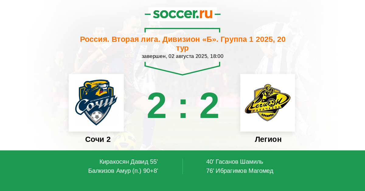 Протокол матча Сочи 2 против Легион