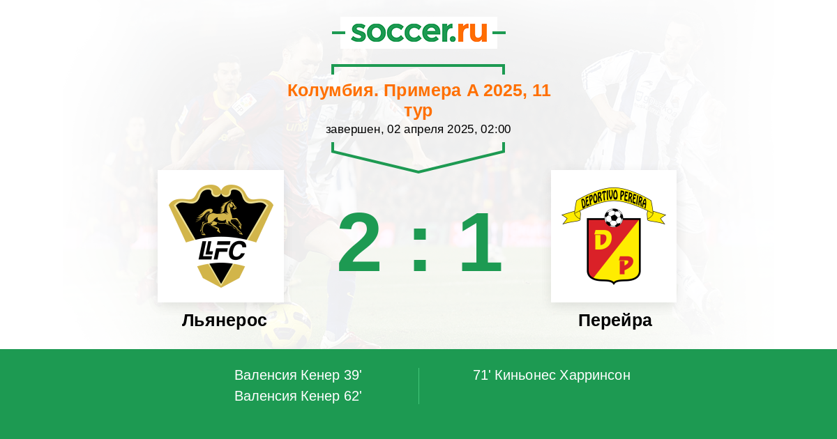 Протокол матча Льянерос против Перейра
