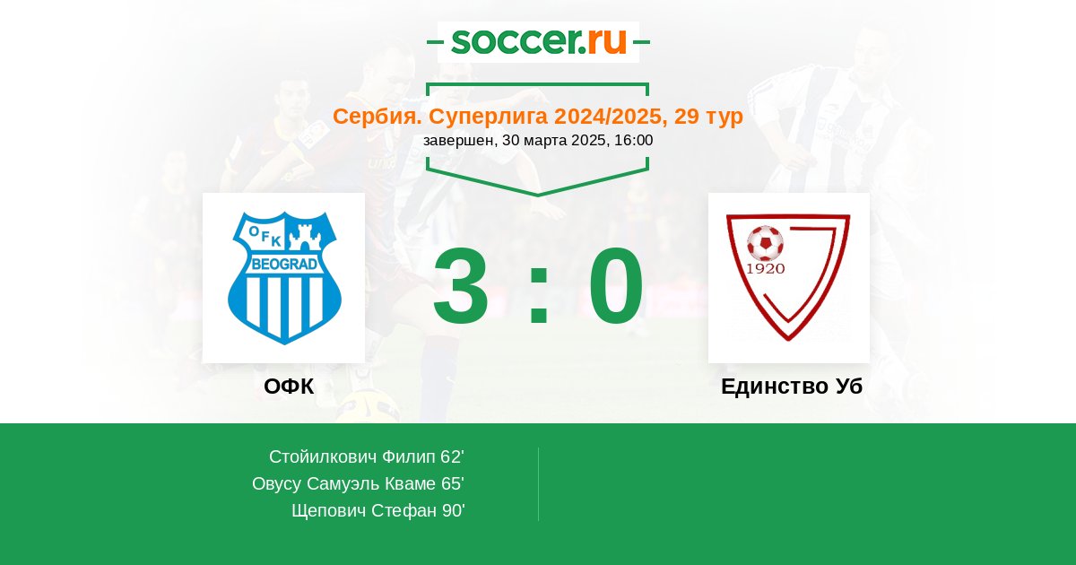 Протокол матча ОФК против Единство Уб