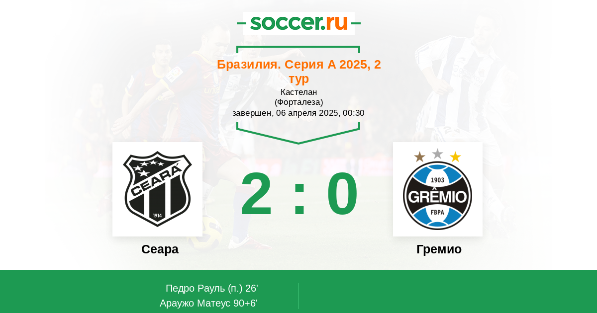 Гол90+6' (2:0) Араужо Матеус (8) (Мартинес Сильвио (22))