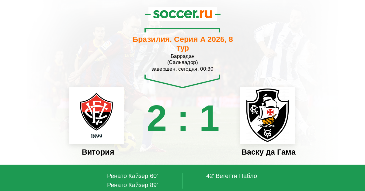 89' (2:1) Ренато Кайзер (79) (Густаво Хенрик да Силва (7))