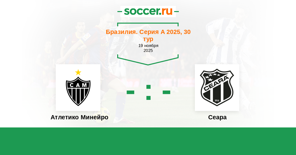 Бразилия. Серия А 30.09.2019 Атлетико Минейро Логотип футбольный клуб Атлетико Минейро (Белу-Оризонти) 2:1 Логотип футбольный клуб Сеара (Форталеза) Сеара