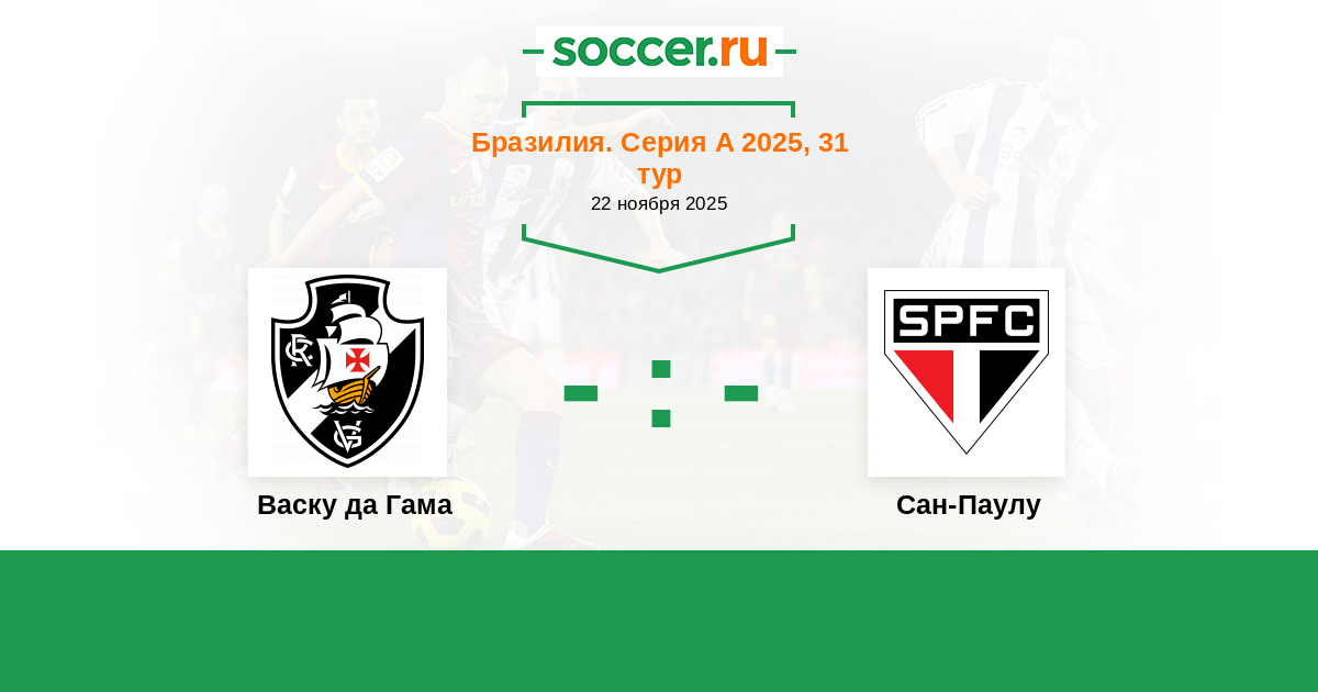 Бразилия. Серия А 17.10.2024 Сан-Паулу Логотип футбольный клуб Сан-Паулу 3:0 Логотип футбольный клуб Васку да Гама (Рио-де-Жанейро) Васку да Гама