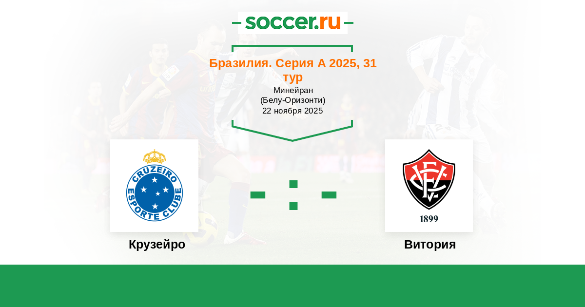 Бразилия. Серия А 13.06.2025 Витория Логотип футбольный клуб Витория (Сальвадор) 0:0 Логотип футбольный клуб Крузейро (Белу-Оризонти) Крузейро