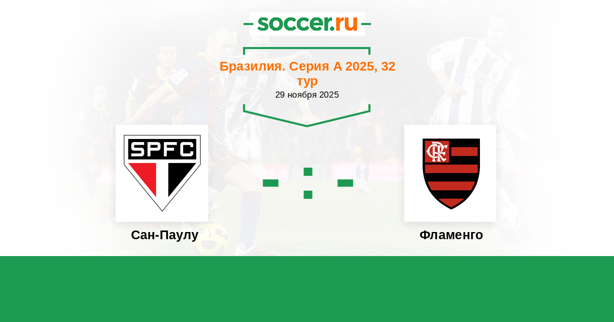 Бразилия. Серия А 22.10.2017 Сан-Паулу Логотип футбольный клуб Сан-Паулу 2:0 Логотип футбольный клуб Фламенго (Рио-де-Жанейро) Фламенго