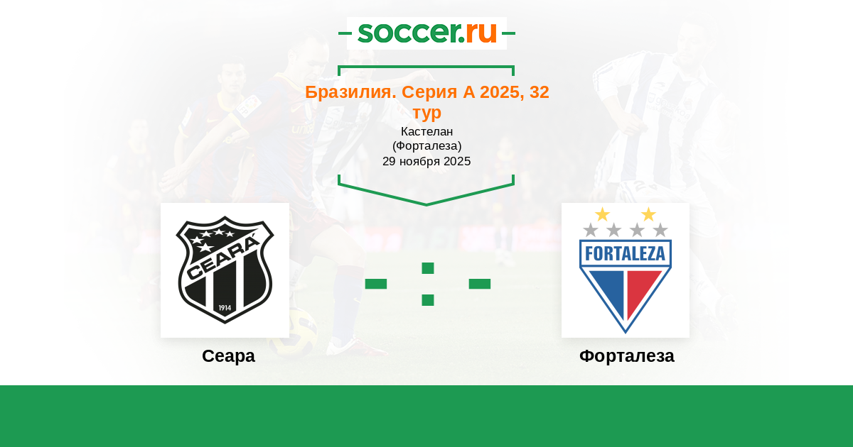 Бразилия. Серия А 18.11.2021 Форталеза Логотип футбольный клуб Форталеза 0:4 Логотип футбольный клуб Сеара (Форталеза) Сеара
