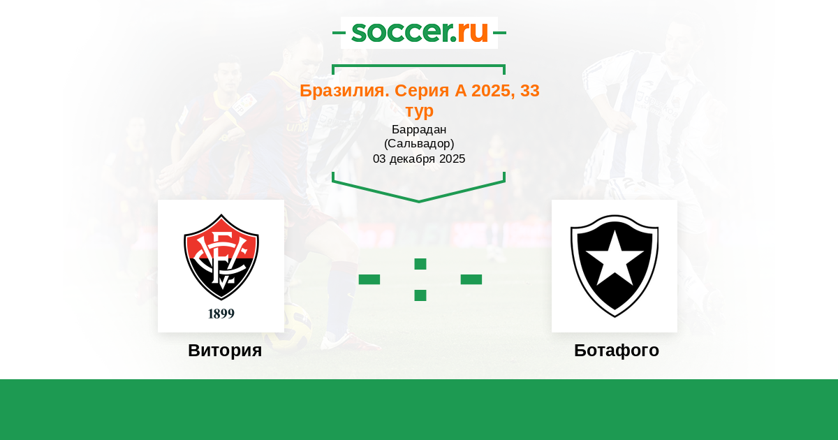 Бразилия. Серия А 17.07.2025 Ботафого Логотип футбольный клуб Ботафого (Рио-де-Жанейро) 0:0 Логотип футбольный клуб Витория (Сальвадор) Витория