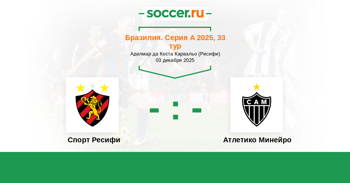 Бразилия. Серия А 19.09.2021 Атлетико Минейро Логотип футбольный клуб Атлетико Минейро (Белу-Оризонти) 3:0 Логотип футбольный клуб Спорт Ресифи Спорт Ресифи
