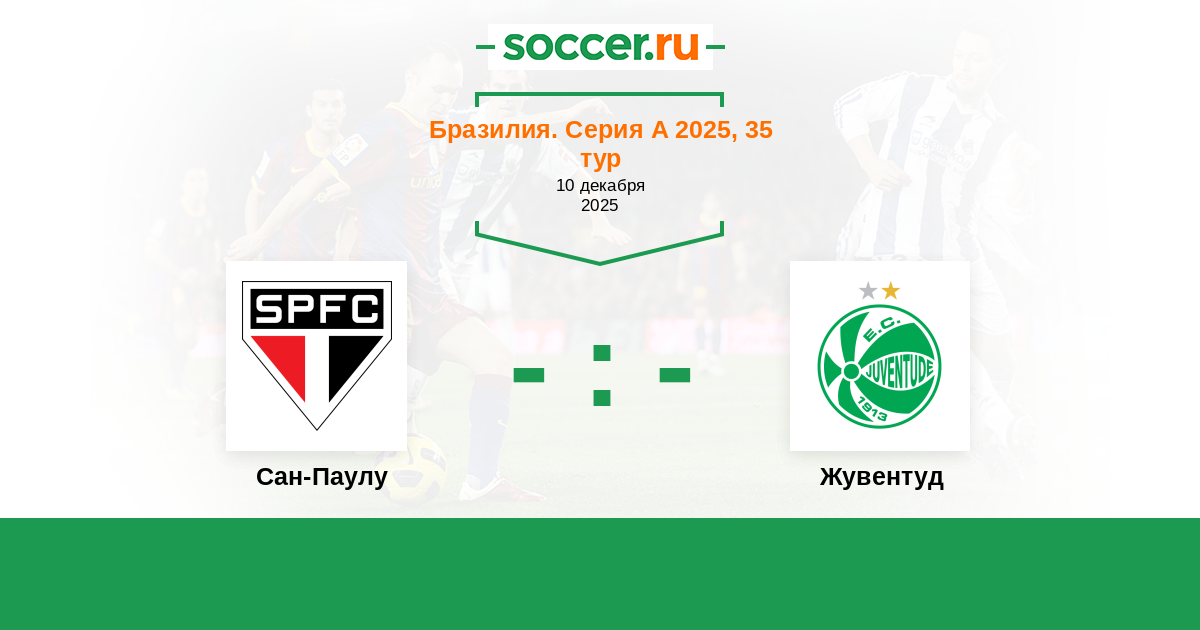 Бразилия. Серия А 05.12.2024 Сан-Паулу Логотип футбольный клуб Сан-Паулу 1:2 Логотип футбольный клуб Жувентуд (Кашиас-ду-Сул) Жувентуд