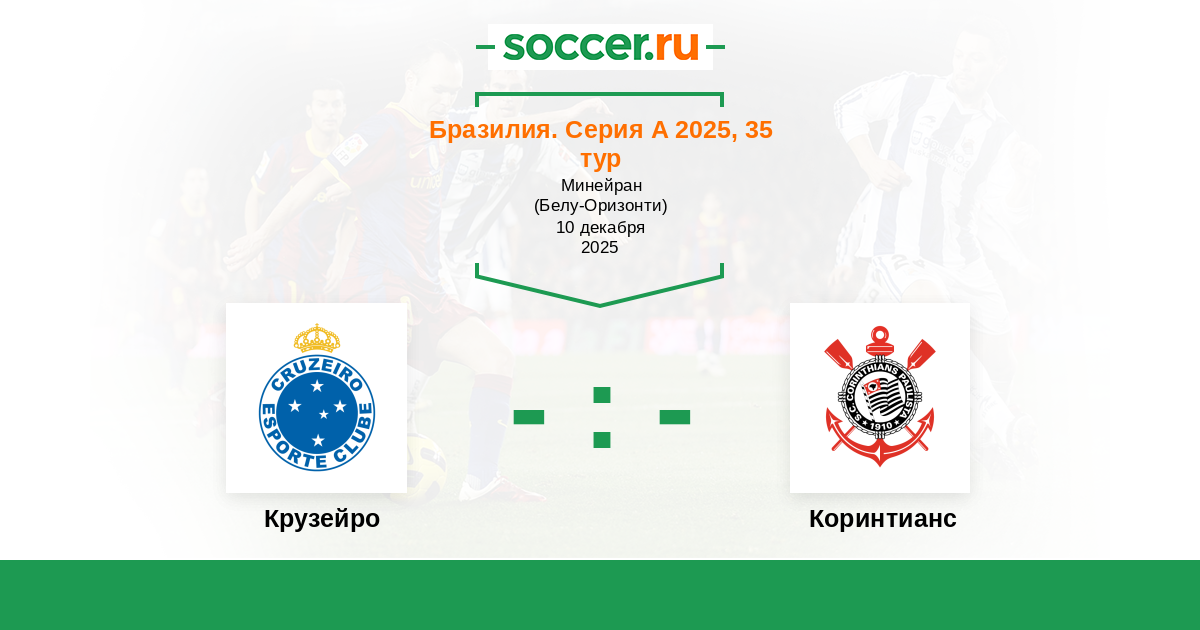 Бразилия. Серия А 20.11.2024 Коринтианс Логотип футбольный клуб Коринтианс (Сан-Паулу) 2:1 Логотип футбольный клуб Крузейро (Белу-Оризонти) Крузейро