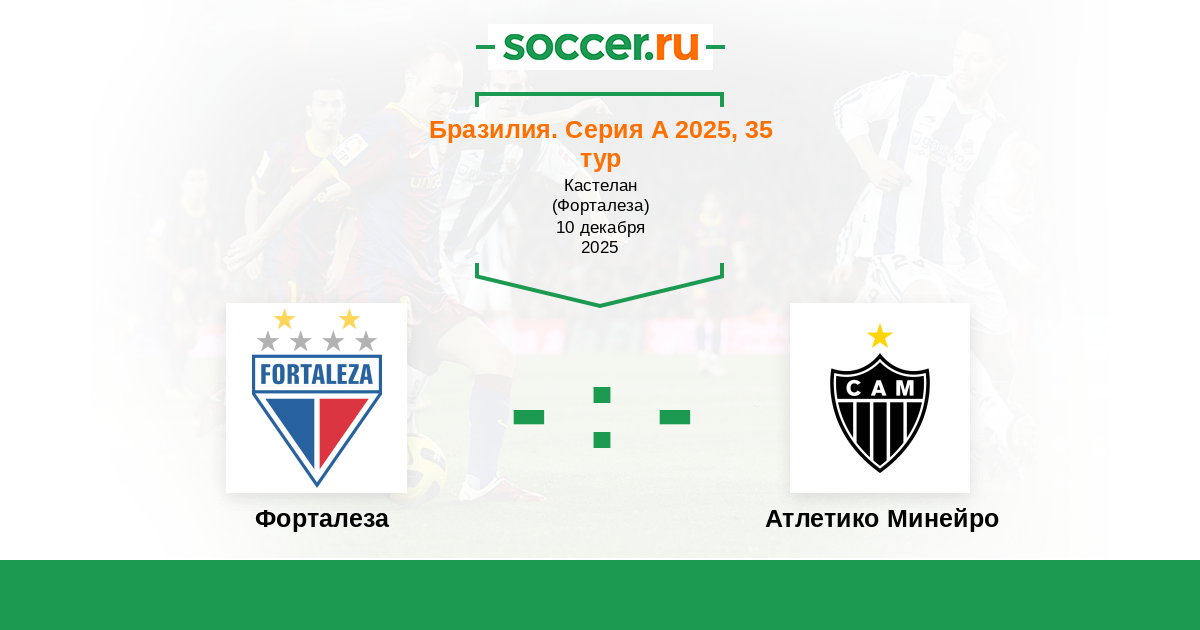 Бразилия. Серия А 17.10.2024 Форталеза Логотип футбольный клуб Форталеза 1:1 Логотип футбольный клуб Атлетико Минейро (Белу-Оризонти) Атлетико Минейро
