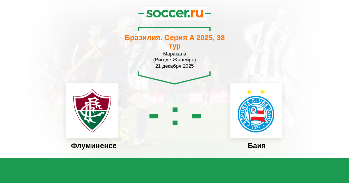 Бразилия. Серия А 29.10.2017 Флуминенсе Логотип футбольный клуб Флуминенсе (Рио-де-Жанейро) 1:1 Логотип футбольный клуб Баия (Салвадор) Баия