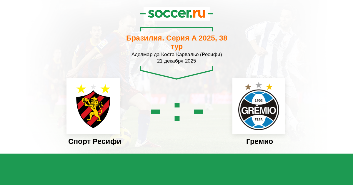 Бразилия. Серия А 20.12.2020 Спорт Ресифи Логотип футбольный клуб Спорт Ресифи 1:1 Логотип футбольный клуб Гремио (Порту-Алегри) Гремио