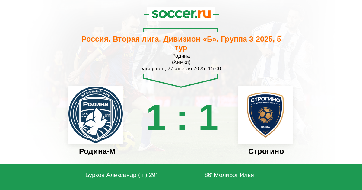 Протокол матча Родина-М против Строгино